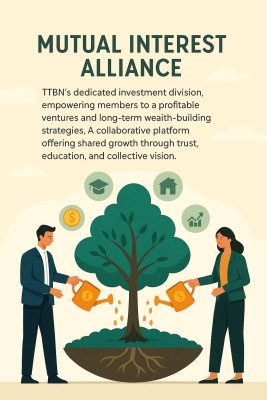 Mutual Interest Alliance is TTBN’s dedicated investment division, a dynamic ecosystem designed to empower members to a profitable ventures and long-term wealth-building strategies. Rooted in collaboration and mutual benefit, this division offers curated opportunities across various sectors in the society. This is more than just investment, it’s shared growth through trust, education, and collective vision. Whether you’re a seasoned investor or just beginning your wealth journey, the platforms under Mutual Interest Alliance are designed to meet you where you are and help you move forward with confidence.